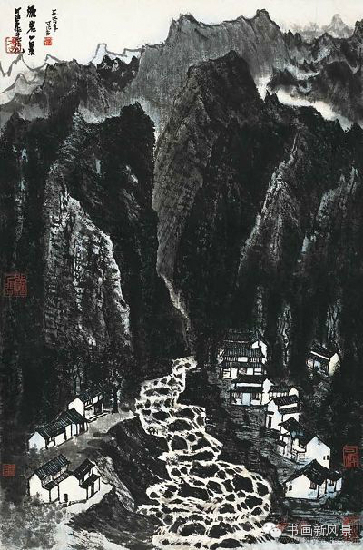 有一次,我在万县,看到暮色苍茫之中,山城的房子,一层一层,很结实,又很丰富、含蓄。要是画清楚了,就没有那种迷蒙的感觉了,其中有看不完的东西,很复杂也很深厚。后来,我就研究,先把树房都画上,以后慢慢再加上去,以纸的明度为"零",树,房子画到"五",色阶成"0"与"5"之比,显得树、房子都很清楚,然后把最亮的部分一层层加上墨色,加到"4"与"5"之比,就很含蓄了。我把这种画法叫做"从无到有,从有到无"。先什么都有,后来又逐渐地消失,使之含蓄起来。采取怎样的艺术加工手段,以传达出特定的意境,要煞费苦心地去研究、经营。