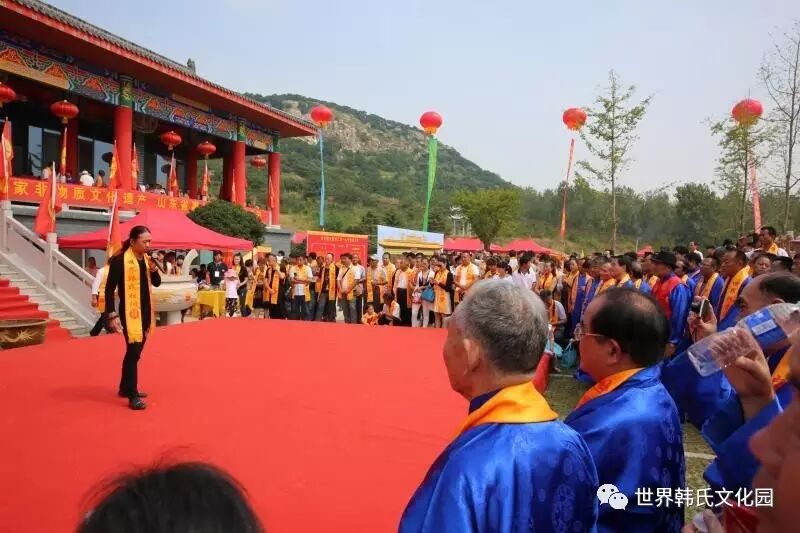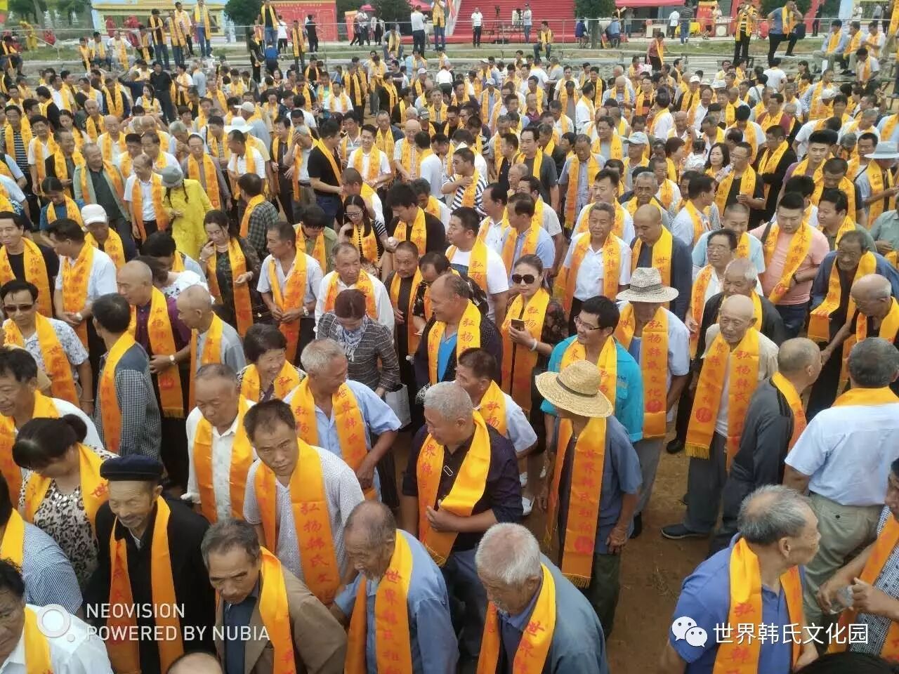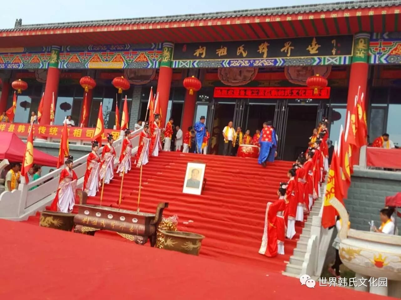 2017年9月9日,世界韩氏祖祠祭祖日,为纪念世界韩氏祖祠开光一周年,世界韩氏祖祠举行了全国韩氏祭祖大典活动,来自全国各地1000余名宗亲参加。活动分为歌舞朝祖、祭天祭地、祭祀毛主席、祭拜先祖、诵读族训族规、瞻仰祖像、个人祭拜、书画族谱展览、义诊等多个环节。