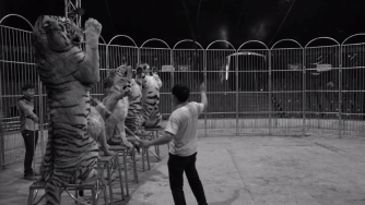 昔日令人文风丧胆的森林之王,变成了动也不敢动的“猫咪”。