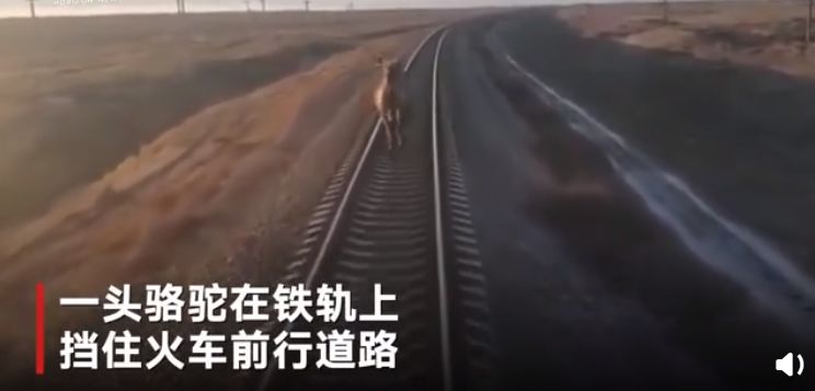 骆驼的栖息地变成了人类的铁轨,如果不是火车开得慢刹车及时,它很可能就命绝于此了......