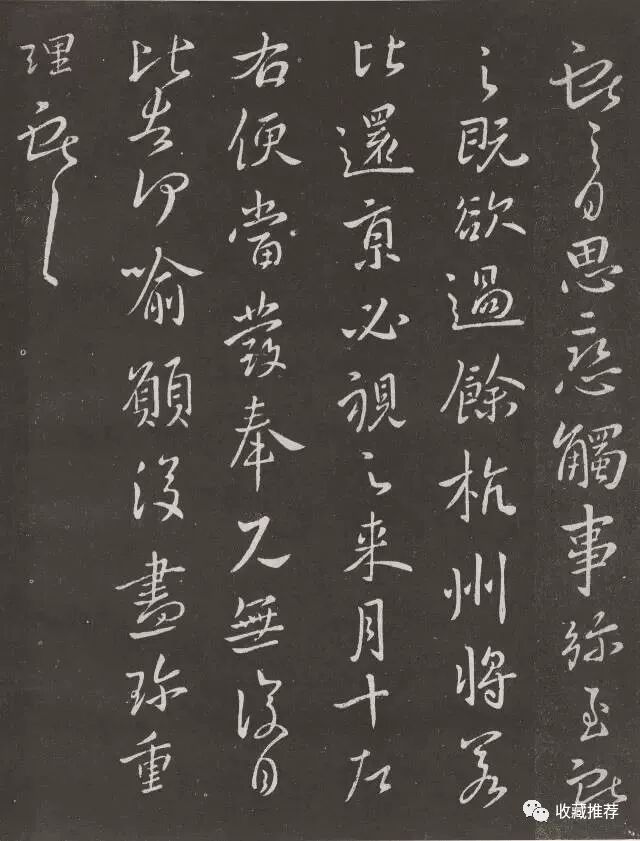 王献之《餘杭帖》(又称《触事帖》)拓本。行书。六行,五十一字。入刻《淳化阁帖》卷九。