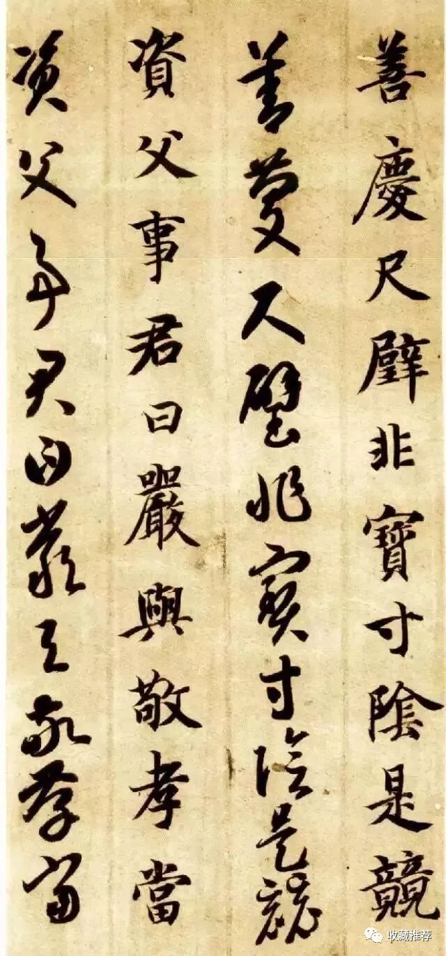 王慈《栢酒帖》。王慈善隶,行书。其草书运笔圆浑,含蕴凝重,然体态十分灵动,纵横姿肆,使人联想到王献之书作风格。