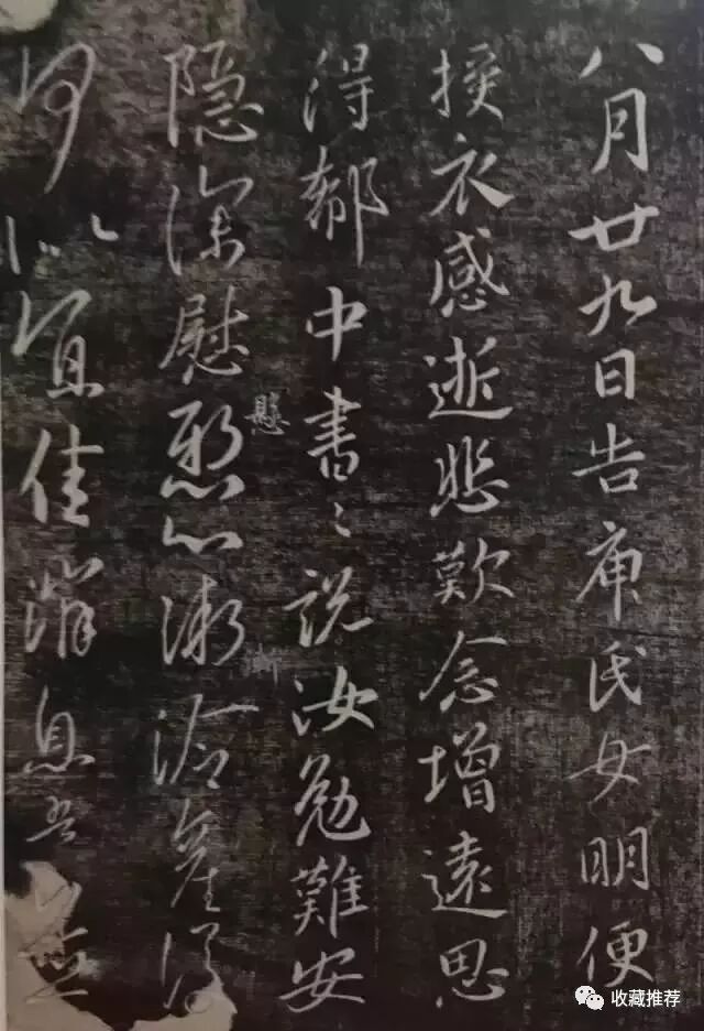 此帖以行楷为主,挥洒自如,笔法多变,妍美流畅。释文:臣九代三从伯祖晋黄门郎徽之书。二日,告□氏女,新月哀摧不自胜,奈何奈何。念痛慕,不可任。得疏知汝故异恶悬心,雨湿热复何似,食不?吾牵劳并顿,勿复,数日还,汝比自护。力不具。徽之等书。姚怀珍,满骞。