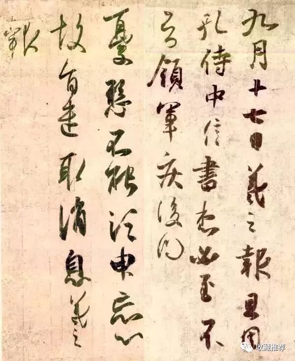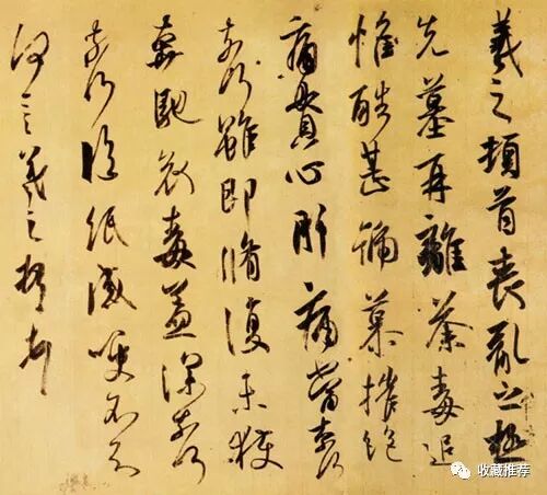 王凝之的此帖笔法以清劲为主,开篇时稳健时迟缓,中后篇用笔速度较快,笔画也变得活跃跳荡。