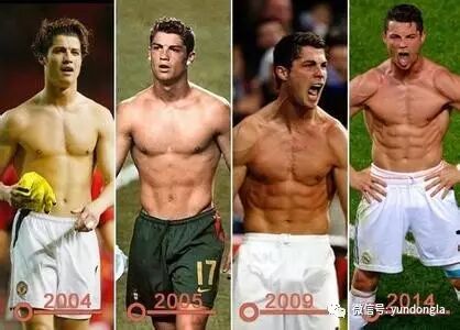 自18岁加盟豪门曼联起,为了能在推崇身体对抗的英超立足,C罗便开启了疯狂健身模式,肌肉变得越来越漂亮。