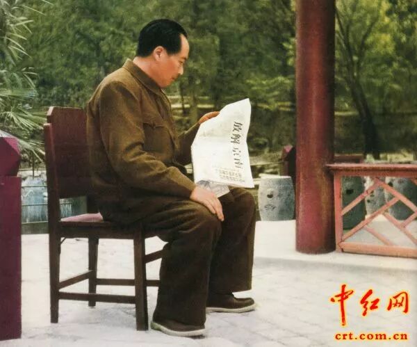 1949年,毛主席在北京香山看报纸。(红色图库)