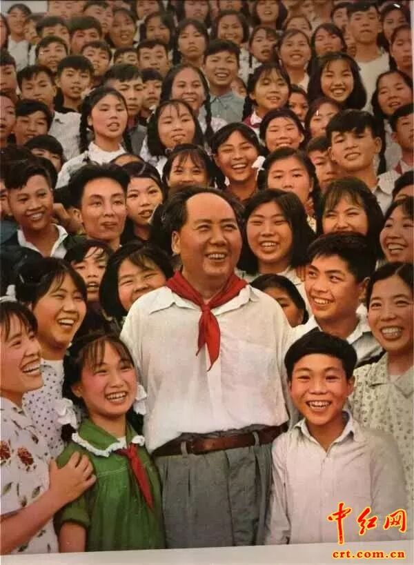 1959年,毛主席和韶山学校的学生们在一起。(红色图库)