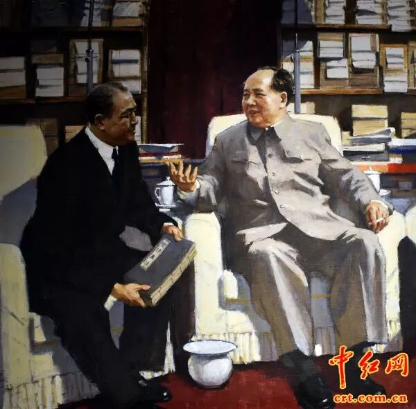 谷钢油画:《毛主席会见田中角荣》(红色图库)