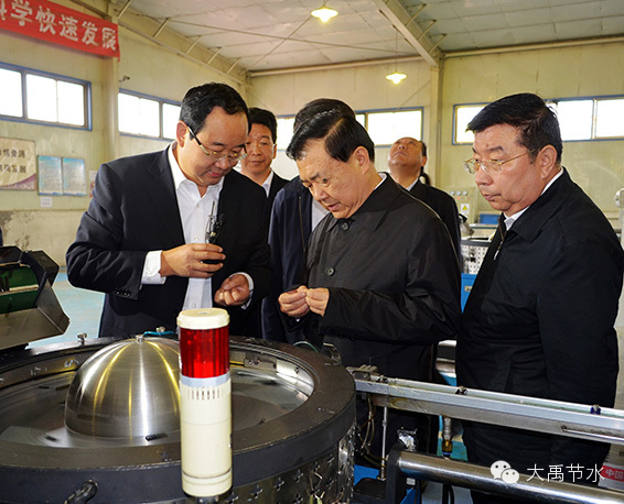 甘肃省委书记、省人大常委会主任王三运在大禹节水集团滴灌车间了解节水灌溉产品功能