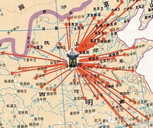 六、明朝大槐树移民在晋北、晋中及内蒙古、东三省地区的分布: