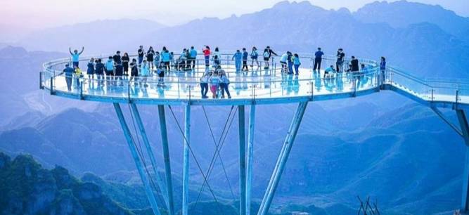 位于北京周边,保定市狼牙山,北京出发车程3.5小时。466㎡的玻璃观景台 可同时容纳200多人。