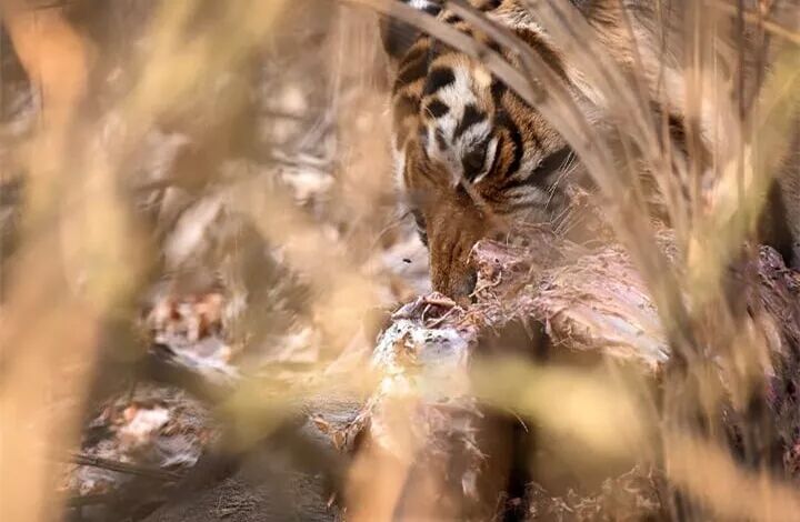 ▲ 老虎捕到猎物后会将其拽进丛林中。