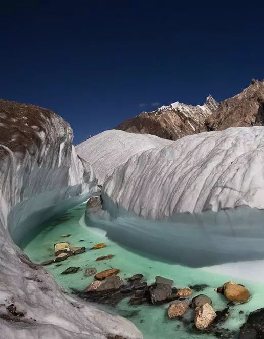 这条河流从冰层中冲出