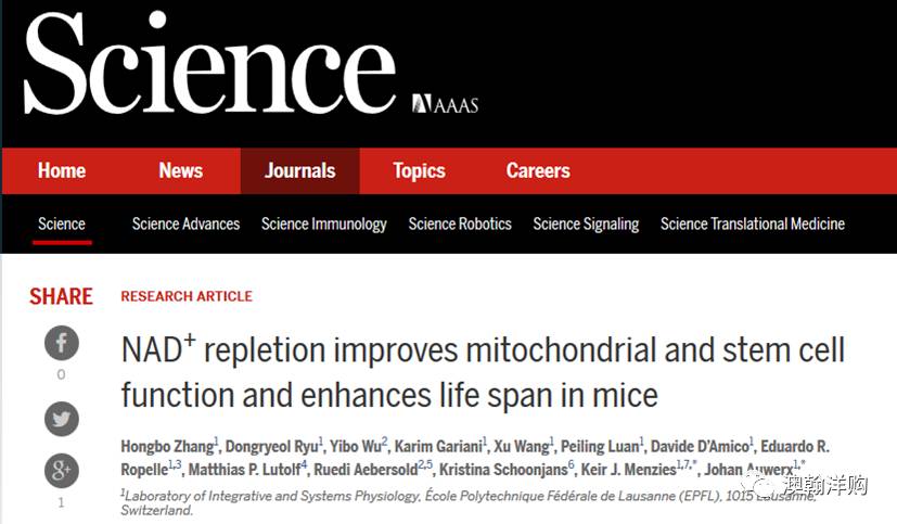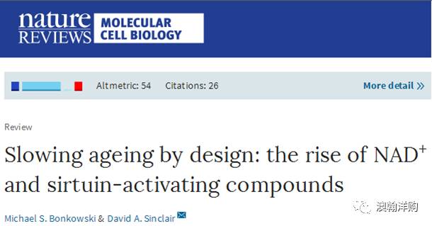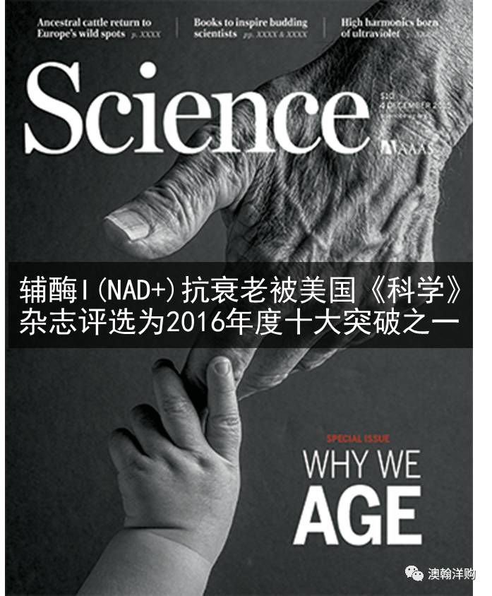“提升辅酶I(NAD+)的含量和Sirtuin酶的激活物可以延缓衰老。” -辛克莱尔博士《科学》期刊2016年11月 https://www.ncbi.nlm.nih.gov/pmc/articles/PMC5107309/