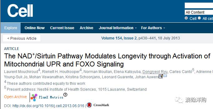 “辅酶I(NAD+)和Sirtuin酶通过激活线粒体未折叠蛋白反应和凋亡信号来调节寿命。” -2013年6月《细胞》期刊 https://www.ncbi.nlm.nih.gov/pmc/articles/PMC3753670/