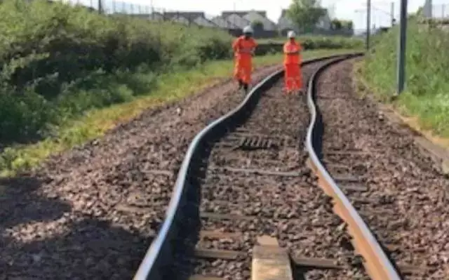 英国部分铁轨甚至被热变了形,部分铁路被迫中断。