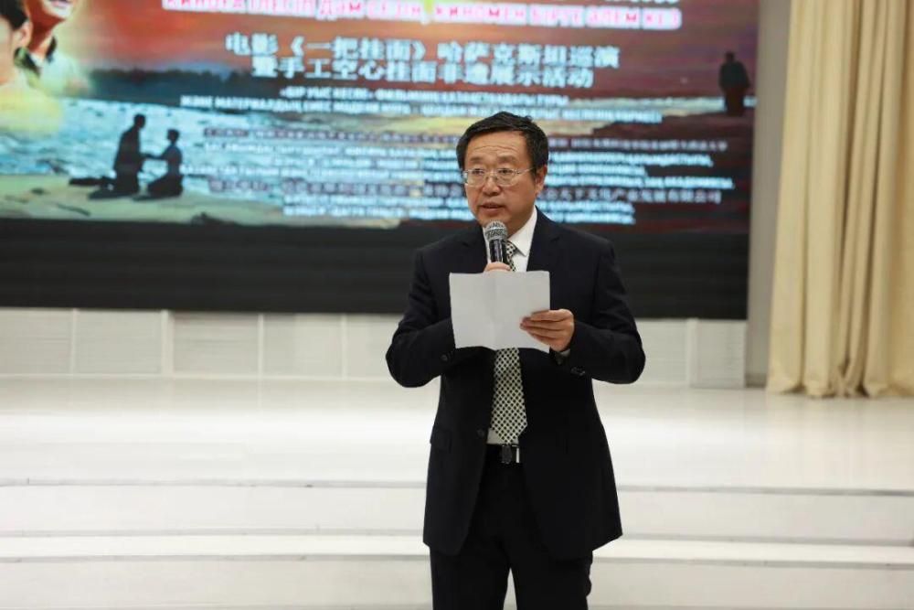 随后,中方代表、电影《一把挂面》的制片人兼导演张璟先生发言。他深情讲述了拍摄这部电影的初衷,分享了吴堡手工空心挂面背后蕴含的匠心精神、世代传承的陕北文化密码以及中国人关于“家”与“根”的情感寄托。张璟导演表示,希望透过这“一把挂面”,能让哈萨克斯坦的朋友们感受到中华文化的深厚底蕴与中国人民的真诚友善。
