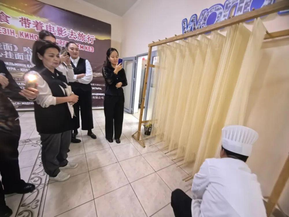 电影放映结束后,活动进入了别开生面的互动体验环节。手工空心挂面非遗传承人张彦兵先生现场展示手工空心挂面的制作技艺,让哈萨克斯坦民众近距离感受吴堡非遗文化的精湛工艺和独特魅力。
