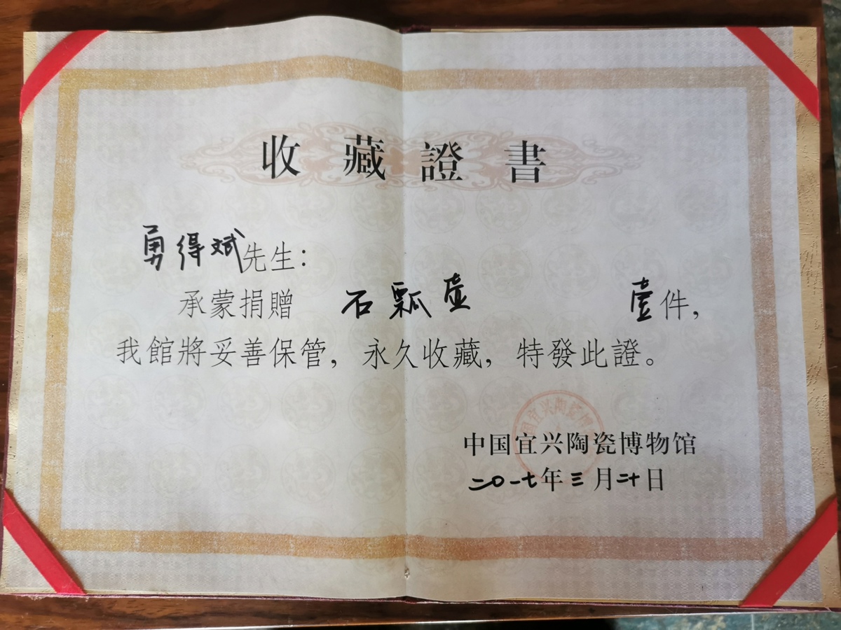 捐赠人:中青年陶艺家,“勇陶斋”主人勇得斌