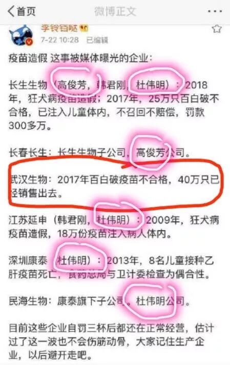 这次受波及的不止刘强东们,还有很多体制内的精英,他们用着先进的空气净化器、吃着特供的肉和菜,有的甚至有能力跑来美国生孩子,他们完全可以打进口的疫苗,或是让孩子去国外生活,但是依然选择国内,说明他们还是很爱国的,但是最终却发现仍然躲不过疫苗的灾难。