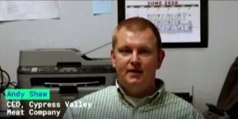 仅他们一个农场就大约有300头牛,每年约有160头乳牛产犊。这些动物无处可走,无法为消费者加工。所以,卡车司机没有东西要去杂货店。 Andy Shaw(Cypress Valley Meat Company, CEO):因此,您有一个正在生产产品的农夫,而您有一个消费者级别的货车,中间的链接是恰巧抓住那个活体动物,并将其转变为零售产品的加工者,以便能够出售给消费者的加工者。