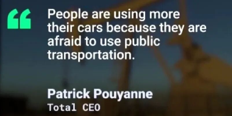 Margo Jarvis(Cohen Veterans Network):我知道有这么多人生活在如此众多的压力中,而现在正处于新冠疫情之中,他们并不知道有些压力源即将来临。 美国退伍军人应对新冠病毒的压力加重,远程医疗的任命从2月的20000跃升到4月的近154000 ,兽医的失业率是11.7% 。 Patrick Pouyanne(Total, CEO):人们大多数时间都在用自己的车作为交通工具,他们害怕公共交通会更容易传染。