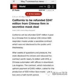 加州为比亚迪N95口罩预先支付了近5亿美元,其中一半已退还给加州,因为该公司未能在合同规定的4月30日截止日期之前获得认证。