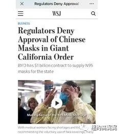 负责监管口罩等设备的国家职业安全与健康研究所于5月4日告知比亚迪,它已将比亚迪的口罩认证申请评为“不可获批”,联邦监管机构发言人凯蒂·沙汉说。