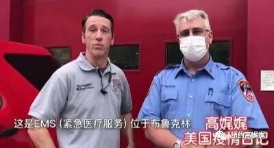 Michael Greco(左):这是EMS(紧急医疗服务站)位于布鲁克林,我们有EMT(紧急医疗技术)的护理人员,我们还有警官回应911(紧急求救电话)电话,帮助群众度过这个大流行病。我们都很努力地在工作,为我们的社区服务。