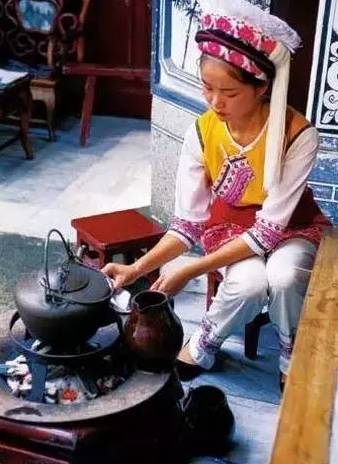 彝族朋友十分喜欢烤罐茶,该茶色泽、香味和浓度俱佳。先将茶叶放入陶制茶罐内在火上焙烤,直至茶叶烤得酥脆、略黄时,乘热将茶罐端离火源,灌人事先烤热的水少许,待罐内茶水泡沫稍息,再冲人热开水至罐满,又在火上煨煮片刻便可起罐,让茶叶沉淀一会儿,再倒出茶水即可饮用。
