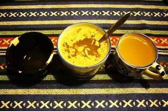 在这里只要有人烟的地方,你都可以闻到飘来的酥油茶的香味。藏族人民最嗜爱酥油茶。而奶茶,是将牛奶或羊奶掺入用红茶或粗茶加热成的清茶而饮,它既有奶的甜味,又有茶的清香。