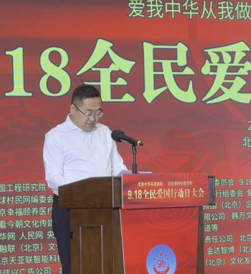 9月18日上午9点18分,首届“9.18”全民爱国行动日大会暨爱国行动志愿者万里行启动仪式在北京隆重举行,来自山东日照、陕西榆林、河南郑州、河北廊坊、山西忻州、天津、北京等全国各地的360多位爱国行动志愿者、红色文化传承人、慈善家、企业家、公益普法宣传者代表齐聚一堂,共同缅怀先烈、抒发爱国情怀,践行爱国使命。与会代表全体起立为英雄烈士默哀之后,大会组委会主席项玉章致开幕辞。