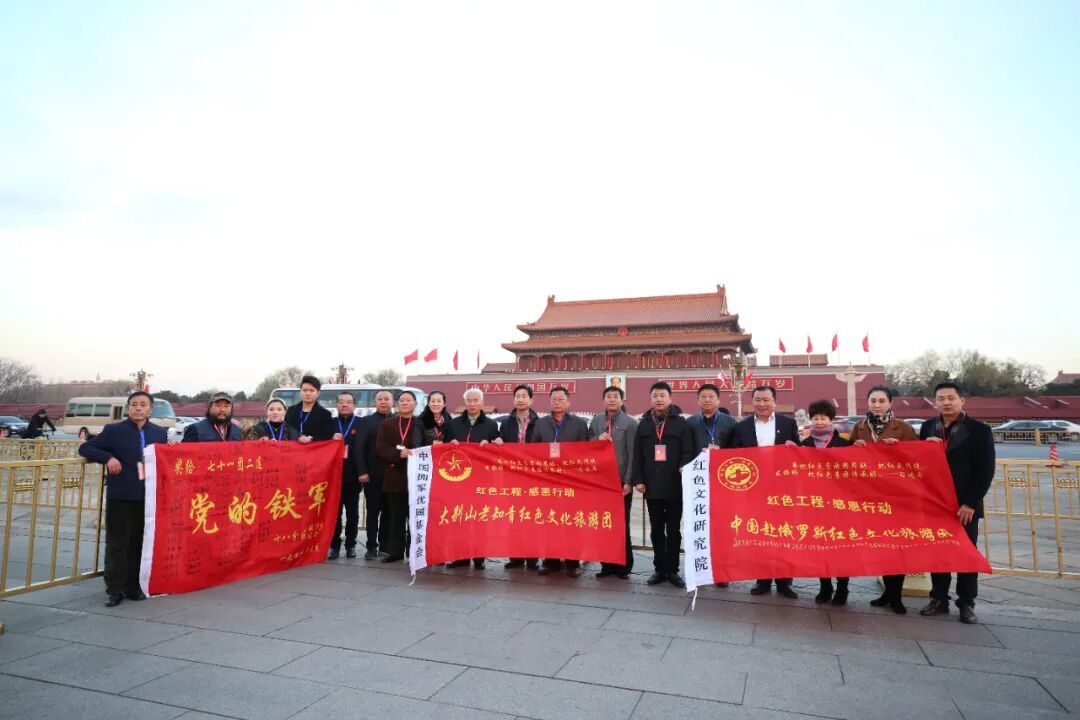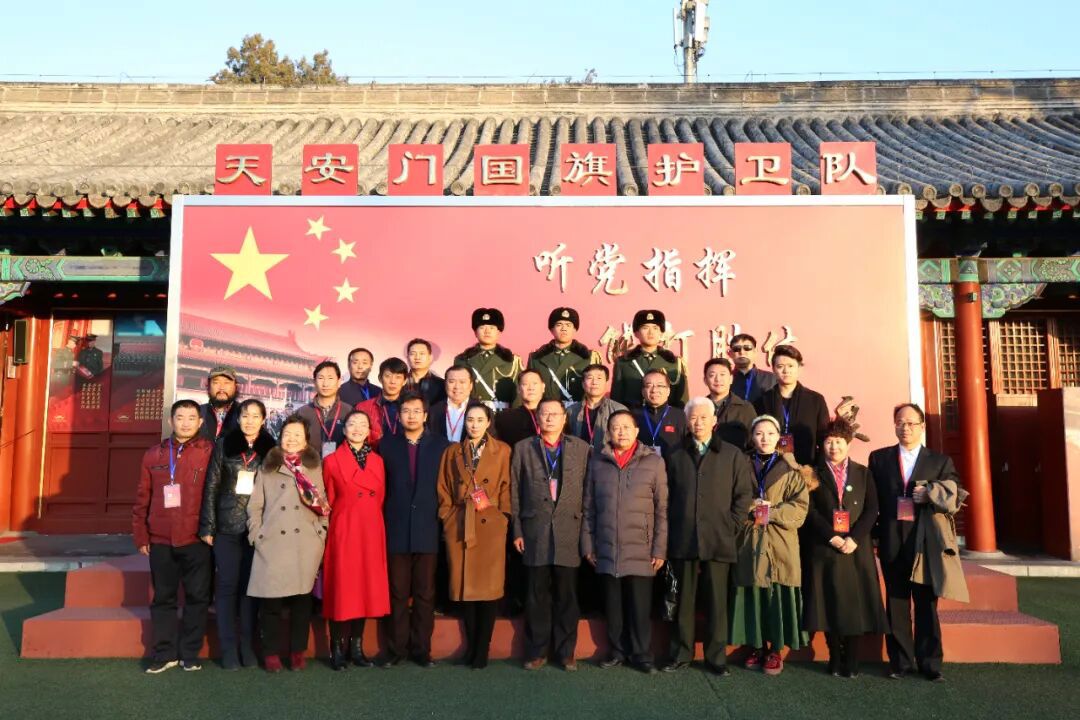 2017年12月6日至12月8日,中国萧军研究会红色文化研究院在京举办学习党的“十九大”精神第一批培训班。这是12月6日早上7时许学员们在北京天安门广场观看升国旗,接受爱国主义教育。右八为姜文华院长。