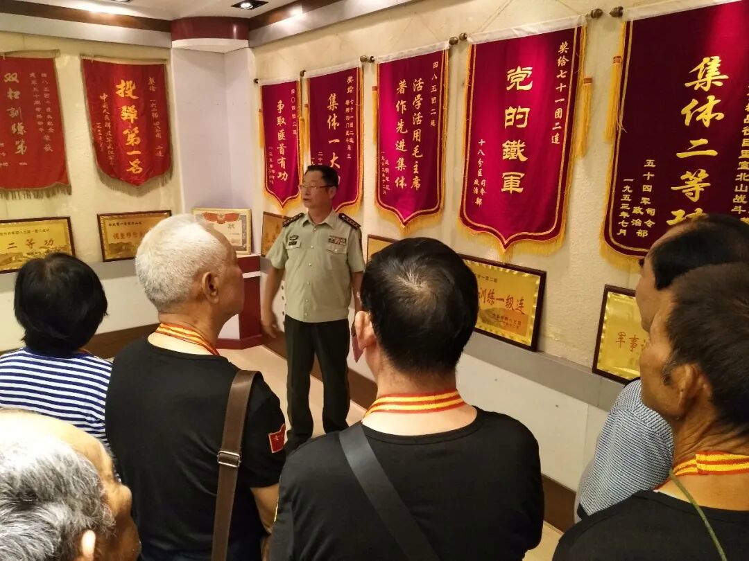 2016年6月25日上午,“牢记党的宗旨、弘扬铁军精神”论坛举行前夕,张敏、陈昊苏、王治国、周秉和、李建生、姜文华等领导和嘉宾,和1979年参加对越自卫反击作战的全国“铁拳团”老兵代表约九十多人,来到“铁拳团”进行爱国强军国防教育。这是参观“铁拳团”二连荣誉室。左三为周总理侄子周秉和,右三为李大钊之孙李建生,左六为陈毅元帅之子陈昊苏,左七为吴方臣少将,右二为姜文华院长。