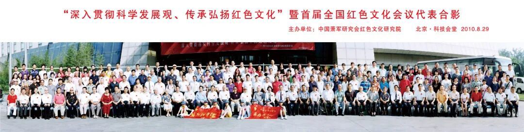 2010年8月29日,“深入贯彻科学发展观、传承弘扬红色文化”暨首届全国红色文化会议在北京科技会堂举行。一排左起:林俊成、姜文华、雷群、李朝胜、张占宗、周秉和、李特特、王景清、李讷、邱金凯、王作义、贾文贤、万海峰、张克辉、万绍芬、王治国、戴俭明、韩双增、王卓、赵步长、朱启录、杜汝波、陈干群、辛子维、萧鸣、李燕杰、张其武、高津淘、方宁、于东、刘哈斯、李和平、胡元新、王辉、田子龙。