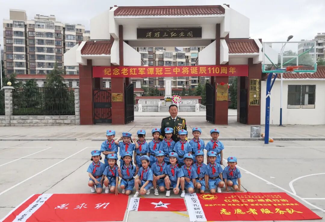 2018年6月30日下午,参加“中国第八届‘红色工程·感恩行动’全国行走进西藏活动”部分的领导、嘉宾在拉萨市西藏职业技术学院瞻仰谭冠三纪念园。姜文华院长同小学生在谭冠三纪念园前合影。