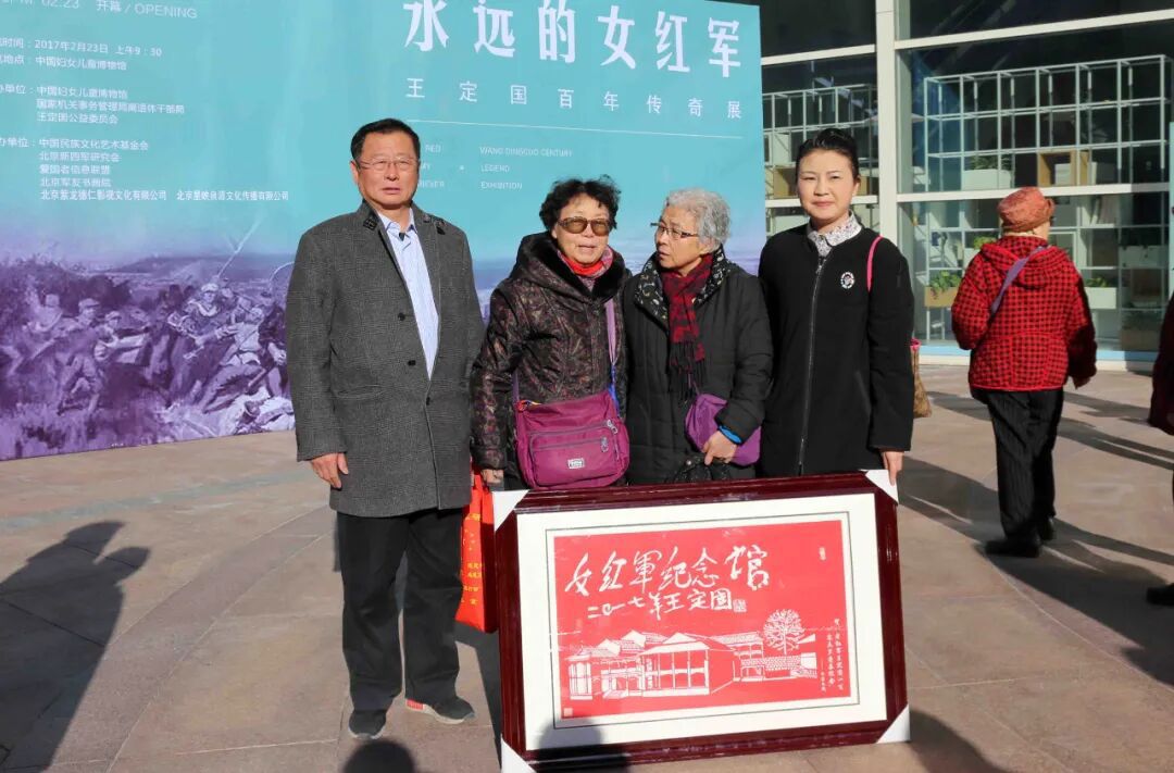 2017年2月23日,《永远的女红军——王定国百年传奇展》开幕式在北京中国妇女儿童博物馆举行。王定国是走过万里长征的巾帼英雄,是中国女红军的杰出代表。今天举办这样的展览,就是要学习王定国身上集中体现的“勇往直前、百折不挠、团结互助”的长征精神。左起:红色文化研究院执行院长姜文华(左一),女红军蒲文清之女何丽(左二),李懋之之女李莉莉(右二),贵州省习水县土城红色文化旅游创新区文旅处处长、中国女红军纪念馆负责人贺焱在开幕式上。