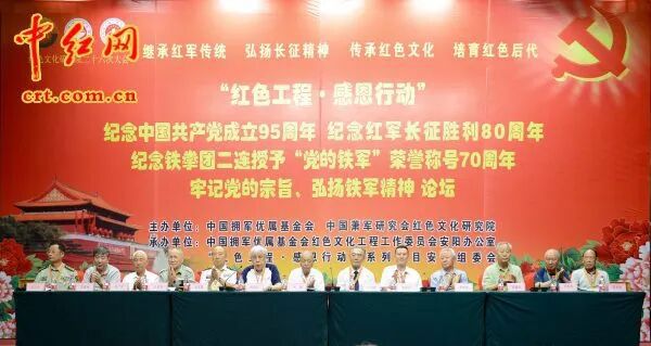 2016年6月25日下午,“红色工程·感恩行动”、纪念中国共产党成立95周年、纪念红军长征胜利80周年、纪念“铁拳团”二连被授予“党的铁军”荣誉称号70周年暨“牢记党的宗旨、弘扬铁军精神”论坛在河南安阳迎宾馆新闻中心大厅举行。左起:红色文化研究院执行院长、“党的铁军”二连老指导员姜文华,中国共产党主要创始人之一李大钊之孙李建生,中组部机关事务管理局原副局长陈广田,“全军爱兵连长”、“党的铁军”二连原连长、猛虎师原副师长田景荣,解放军海军航空工程学院原副院长吴方臣少将,陈毅元帅之子、中国人民对外友好协会原会长陈昊苏,老红军、北京军区总医院原副院长、红色文化研究院名誉院长张敏,全国工商联原副主席、红色文化研究院院长王治国,周恩来总理侄子周秉和,河南省人大原副主任李中央,河南省高级法院原院长李道民,郑州市市委原副书记邵其政,“铁拳团”原团长、猛虎师原副师长、安阳市慈善总会常务副会长周长军。(中红网王子禄摄)