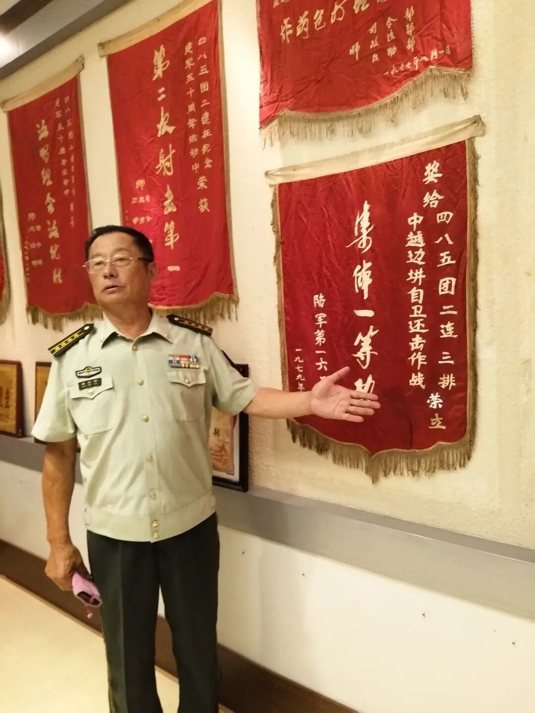 2016年6月25日上午,“牢记党的宗旨、弘扬铁军精神”论坛举行前夕,张敏、陈昊苏、王治国、周秉和、李建生、姜文华等领导和嘉宾,和1979年参加对越自卫反击作战的全国“铁拳团”老兵代表约九十多人,来到“铁拳团”进行爱国强军国防教育。这是参观“铁拳团”二连荣誉室。左一为红色文化研究院执行院长、“党的铁军”二连老指导员姜文华,右二为陈毅元帅之子、中国人民对外友好协会原会长陈昊苏。