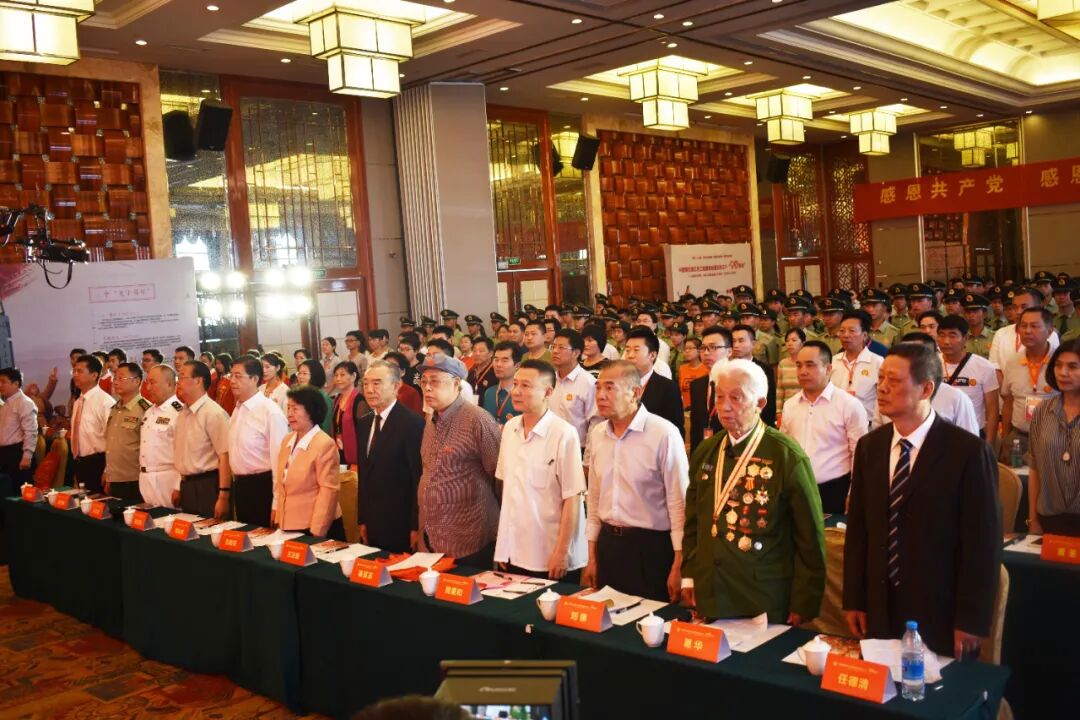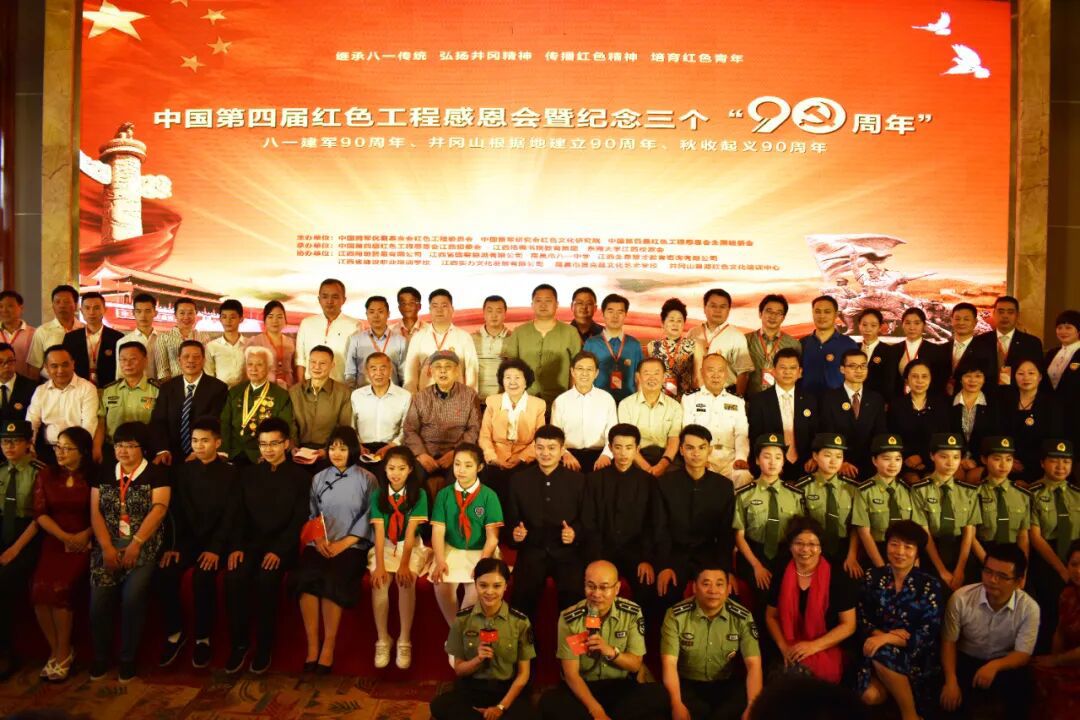 2017年5月19日,中国第四届红色工程感恩会暨纪念三个90周年(八一建军90周年、井冈山根据地建立90周年、秋收起义90周年)活动在江西南昌举行。这是院校师生代表、热忱红色文化的企业及社会团体代表、红色工程感恩行动志愿者服务队等合影留念。中排左九为江西省委原书记万绍芬,左八为陈毅元帅之子陈昊苏,左七为朱德元帅外孙刘康,左三为姜文华院长。