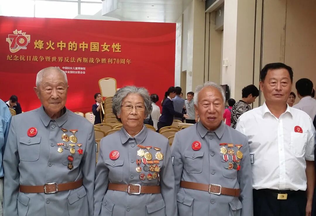 2015年8月24日,烽火中的中国女性——纪念抗日战争暨世界反法西斯战争胜利70周年专题展在北京中国妇女儿童博物馆开展。抗战老兵同红色文化研究院执行院长姜文华(右一)合影。