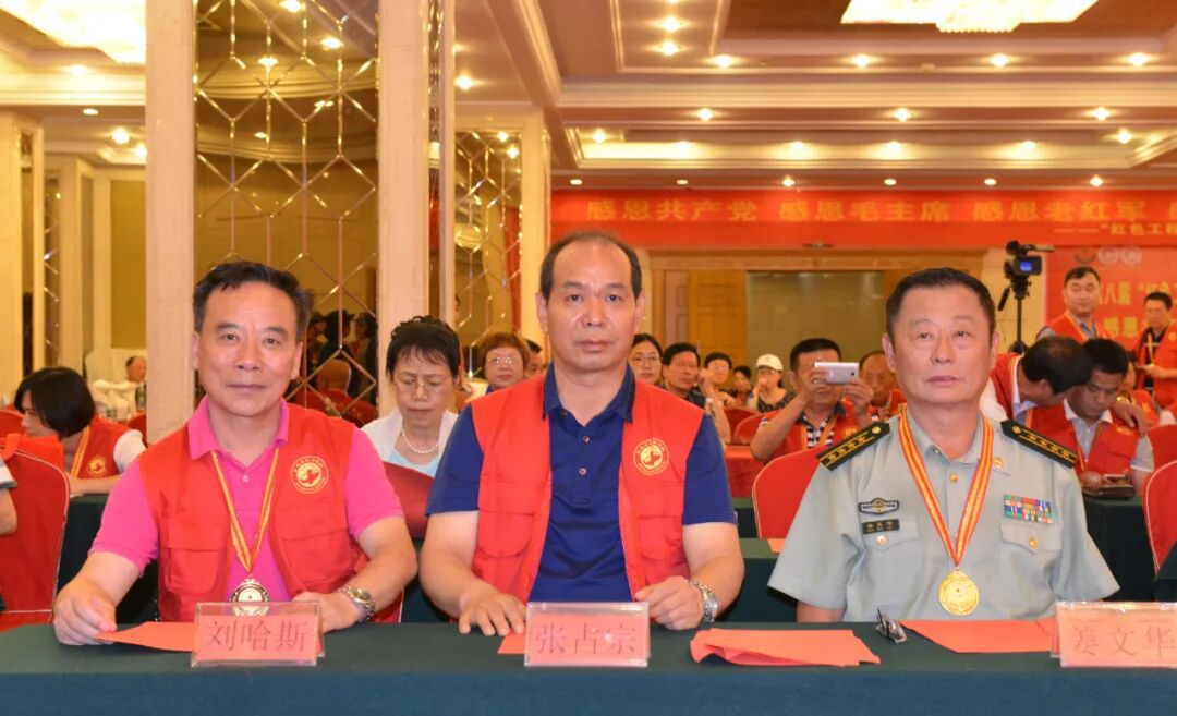 2018年7月14日,中国第八届“红色工程·感恩行动”全国行走进武汉(感恩共产党 感恩毛主席 感恩老红军 感恩卫国老兵)、纪念中国共产党成立97周年、纪念中国人民解放军建军91周年、纪念毛主席诞辰125周年、纪念周总理诞辰120周年、纪念一九九八年抗洪胜利二十周年活动、“牢记党的宗旨、弘扬抗洪精神”论坛在武汉举行。活动现场。自左至右:红色文化研究院副院长、解放军通讯指挥学院教研室原主任刘哈斯大校,红色文化研究院常务副院长、北京大卫中医医院院长张占宗,红色文化研究院执行院长、中国拥军优属基金会副秘书长、“红色工程·感恩行动”全国组委会主任、原武警武汉指挥学校副校长姜文华。