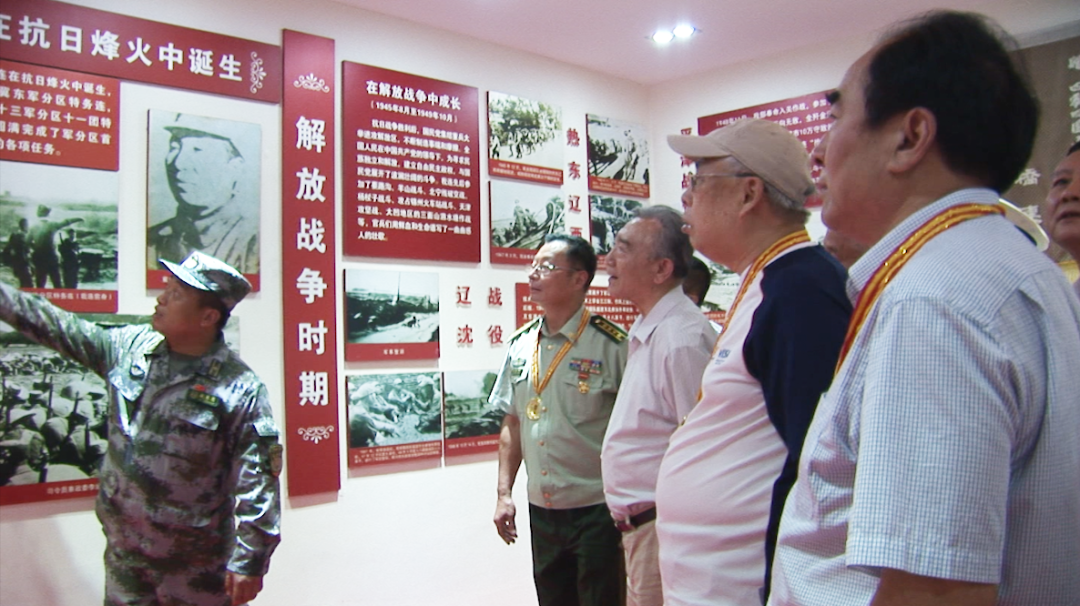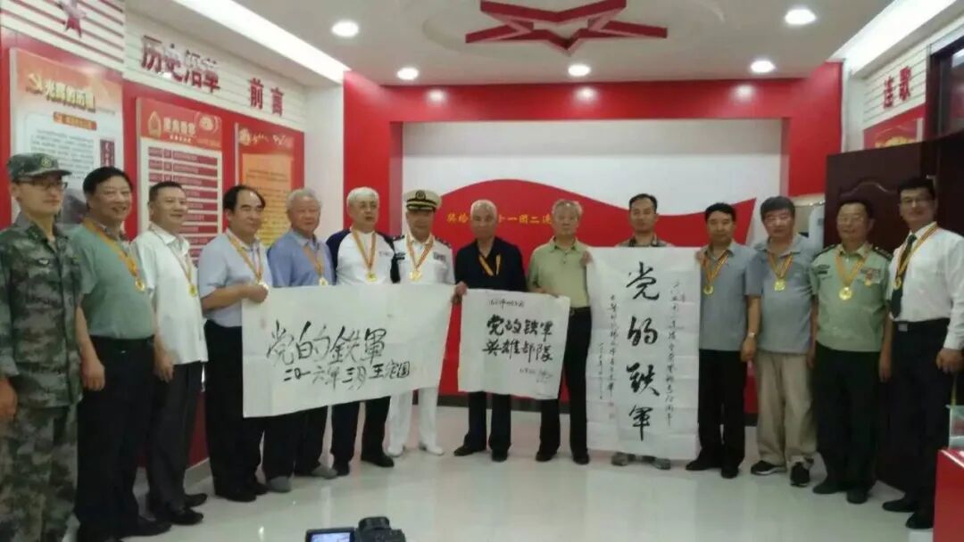 2016年6月25日上午,“牢记党的宗旨、弘扬铁军精神”论坛举行前夕,张敏、陈昊苏、王治国、周秉和、李建生、姜文华等领导和嘉宾,和1979年参加对越自卫反击作战的全国“铁拳团”老兵代表约九十多人,来到“铁拳团”进行爱国强军国防教育。这是参观“铁拳团”二连荣誉室。左起:红色文化研究院执行院长、“党的铁军”二连老指导员姜文华,解放军海军航空工程学院原副院长吴方臣少将,陈毅元帅之子、中国人民对外友好协会原会长陈昊苏,周恩来总理侄子周秉和。