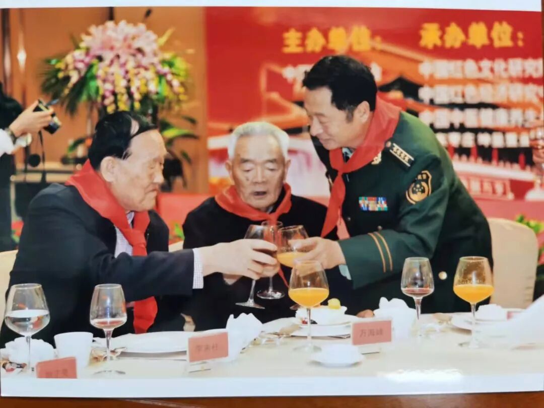 姜文华院长(右)向老红军、原成都军区政委万海峰上将(中),原北京军区司令员李来柱上将敬酒。
