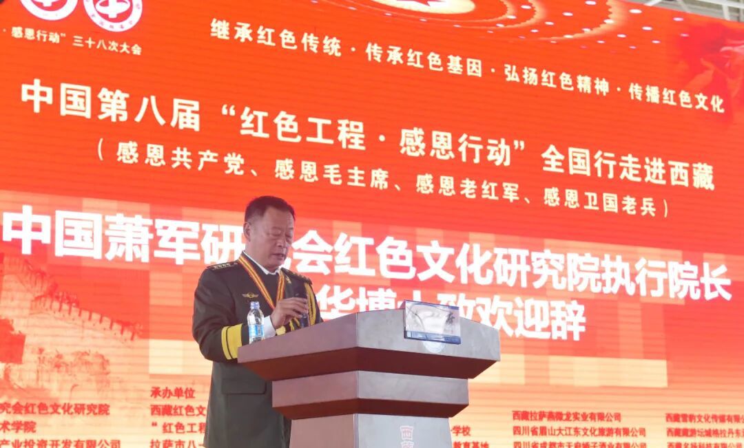 2018年7月1日上午,中国第八届“红色工程·感恩行动”全国行走进西藏(感恩共产党 感恩毛主席 感恩老红军 感恩卫国老兵)、纪念中国共产党成立97周年、纪念中国人民解放军建军91周年、纪念毛主席诞辰125周年、纪念周总理诞辰120周年、“牢记党的宗旨,弘扬老西藏精神”论坛、纪念老红军谭冠三中将诞辰110周年活动,在拉萨市西藏职业技术学院大学生活动中心举行。原武警武汉指挥学校副校长、红色文化研究院执行院长姜文华致欢迎词。