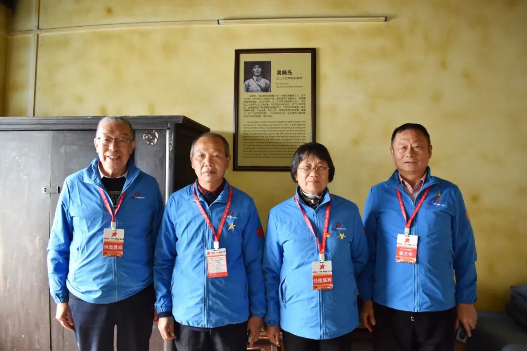 2020年11月14日,喜迎中国共产党成立100周年、纪念红二十五军长征胜利85周年暨中国长征·汽车(新能源)拉力赛卢氏站发车仪式在河南省三门峡市卢氏县卢园广场举行。卢氏县红二十五军军部旧址吴焕先卧室合影。左起:红二十五军老战士李庆柳之子李新国,红二十五军政委、鄂豫陕省委代理书记吴焕先侄子吴世友,红二十五军军长程子华之女林爽爽,红二十五军长征·红色文化传承总策划、红色文化研究院执行院长姜文华。