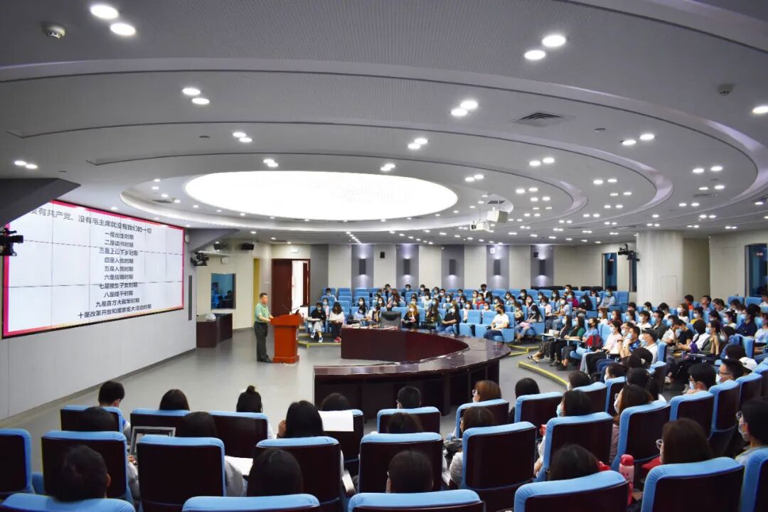 2021年5月26日,中国第二十届“红色工程·感恩行动”(感恩共产党 感恩毛主席 感恩老红军 感恩卫国老兵)全国行走进北京——原武警武汉指挥学校副校长、中国萧军研究会副会长兼红色文化研究院执行院长姜文华走进北京第二外国语学院商学院讲党史。