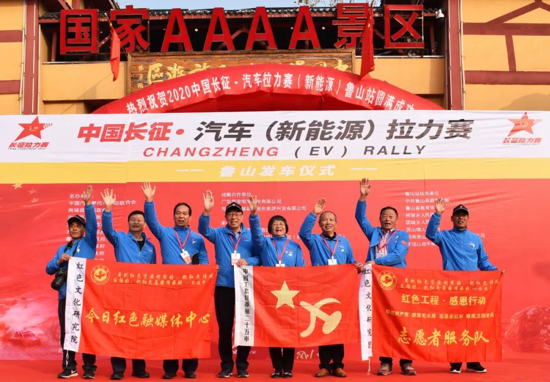 2020年11月11日,喜迎中国共产党成立100周年、纪念红二十五军长征胜利85周年暨中国长征·汽车(新能源)拉力赛光山站发车仪式在河南省信阳市光山县文殊乡花山寨举行。这是红色文化研究院执行院长姜文华(左一)在重走长征路上。