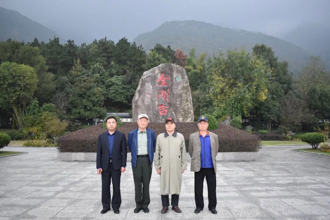 2020年10月18日,中国第十六届“红色工程·感恩行动”(感恩共产党 感恩毛主席 感恩老红军 感恩卫国老兵)全国行一一走进大别山红色商城县,党史军史文博学者、军事博物馆原馆长郭得河少将(右二),原军事科学院学术调研部部长韩韧大校(左二),原武警武汉指挥学校副校长、红色文化研究院执行院长姜文华(右一)一行,在河南信阳商城县党史办主任王志昌(左一)陪同下,来到商城县革命历史纪念馆、金刚台景区等地参观学习。