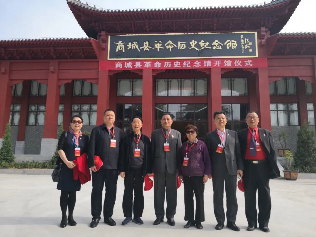 2019年5月6日,商城起义胜利90周年纪念大会在河南省信阳市商城县委会议中心举行。这是高敬亭之女高凤英(右三)、李德生上将长子李和平(右四)、万海峰上将秘书孙德阁(左二)、原武警武汉指挥学校副校长姜文华(右一)、北京新四军研究会副秘书长张怀旗(右二)、老红军后代、原信阳驻深圳办事处主任余建华(左一)在商城县革命历史纪念馆合影。